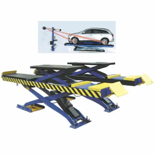 Cầu nâng cắt kéo kiểm tra góc đặt bánh xe 5.5 tấn, lắp chìm, có bàn nâng phụ (3 pha , màu xanh RAL 3166, chưa gồm đĩa lái).